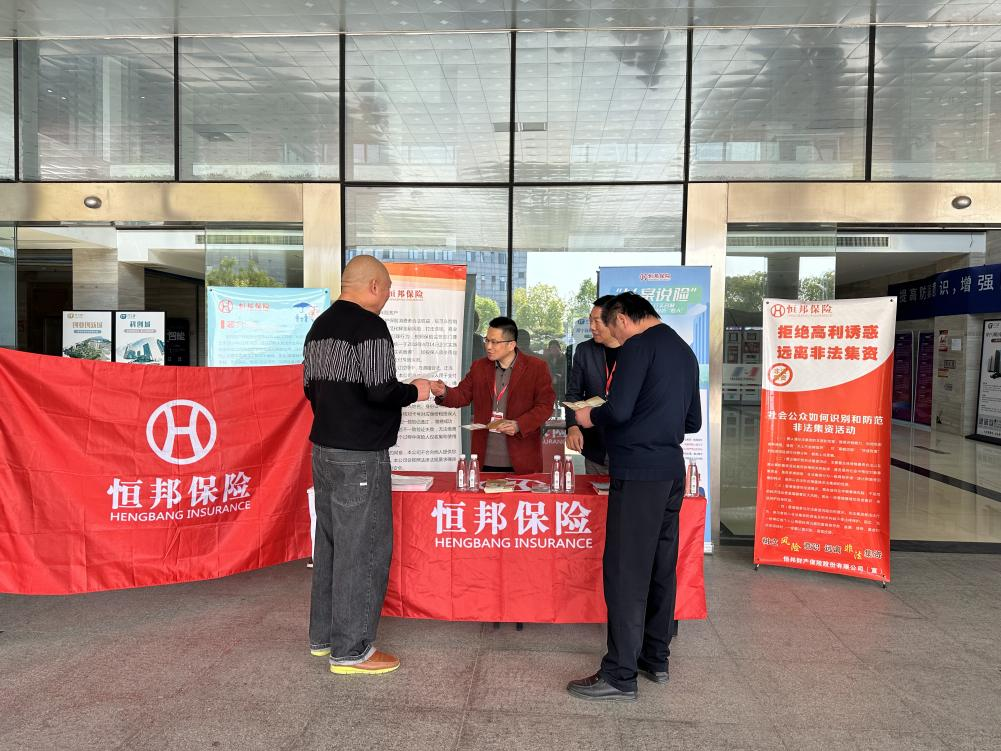 恒邦保险山西分公司工作人员在公园进行“远离非法金融活动”采访活动