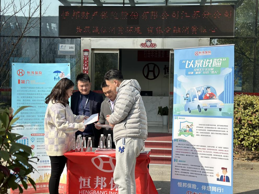 恒邦保险江苏分公司工作人员在邦宁科技园做“以案说险”宣传