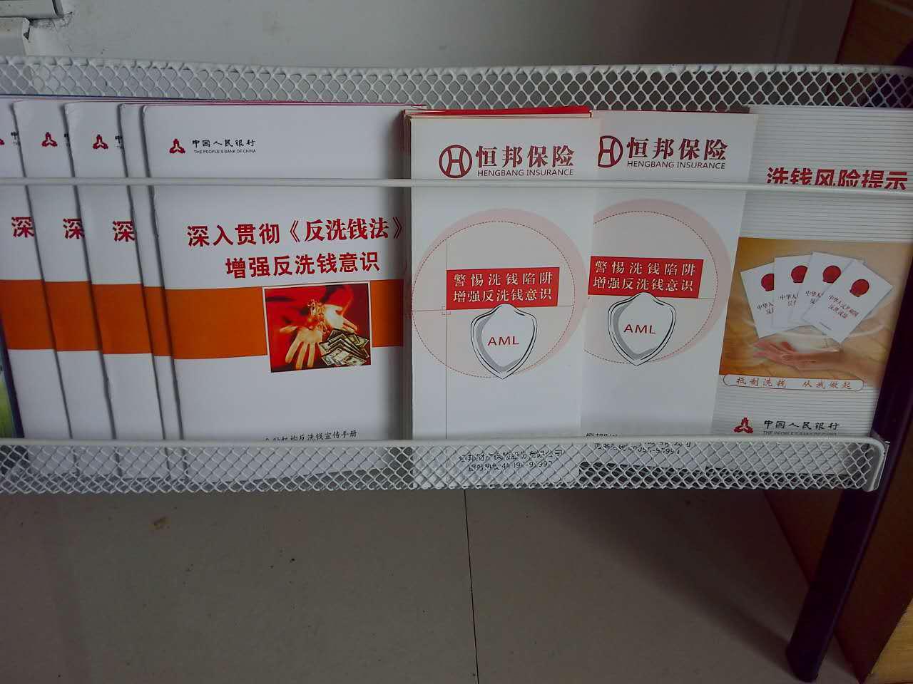 1、悬挂反洗钱宣传标语,印发反洗钱宣传手册