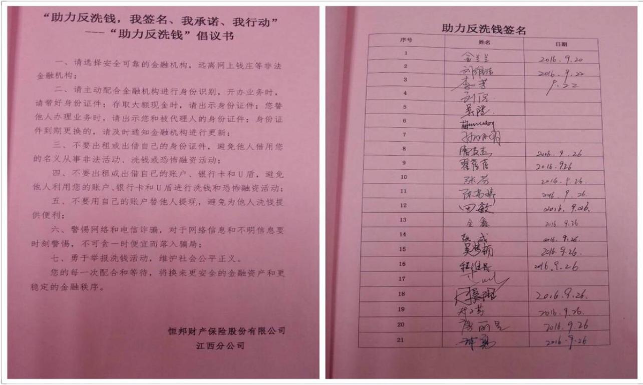 5、组织开展“助力反洗钱”倡议书签名活动