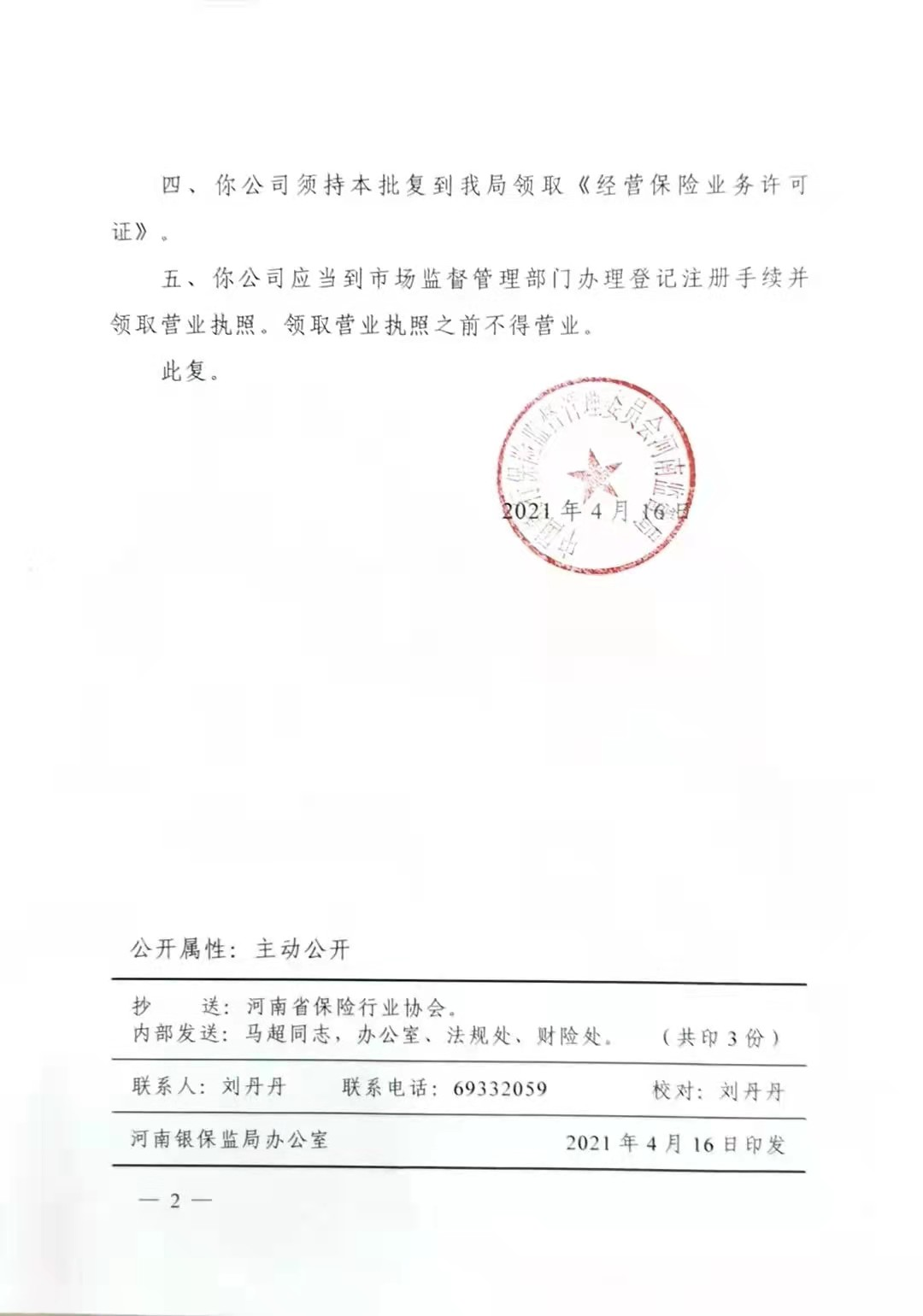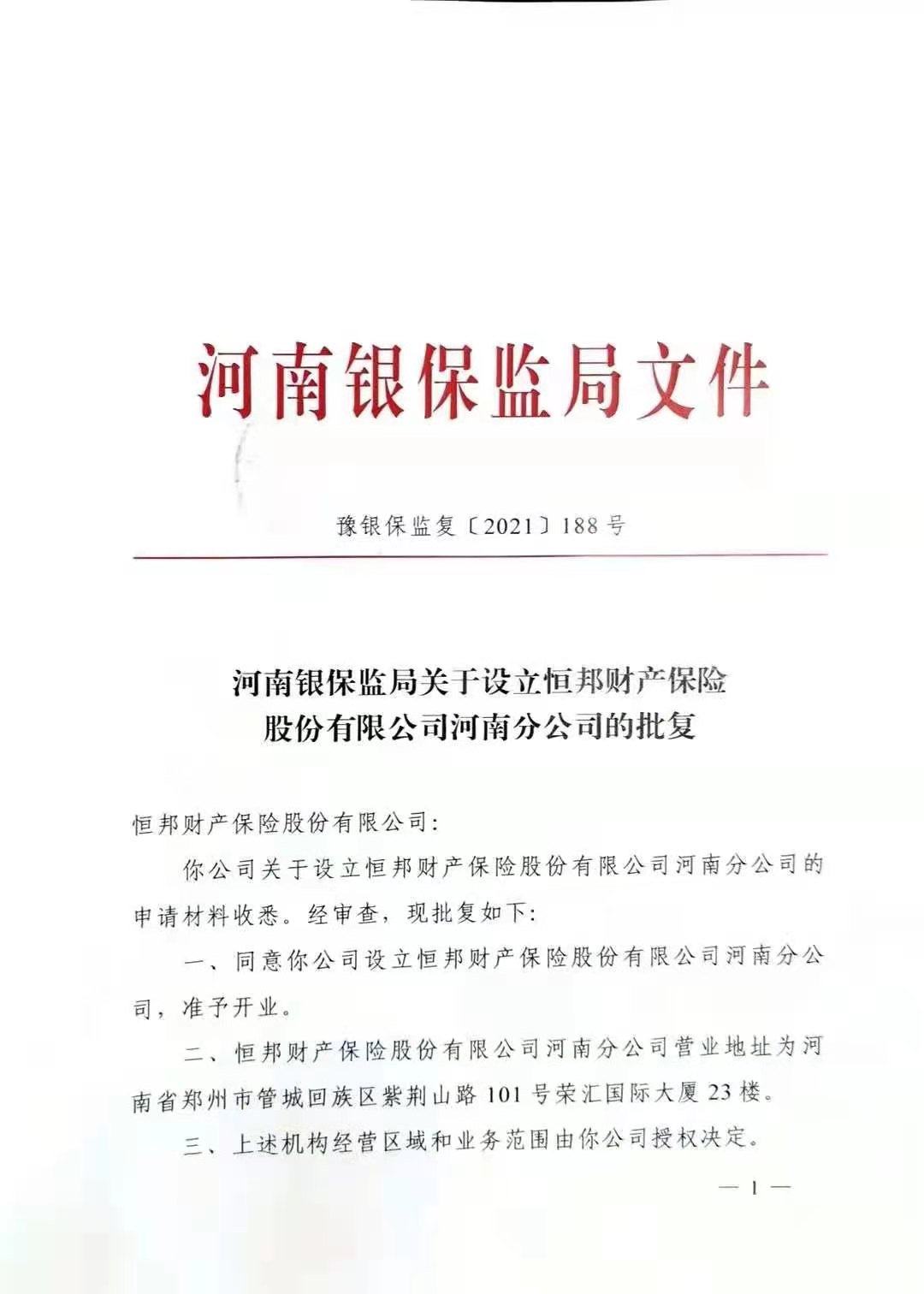 2021年4月16日,|168飞艇官网河南分公司获河南银保监局批准开业,成为恒邦保险在全国设立的第七家分公司。