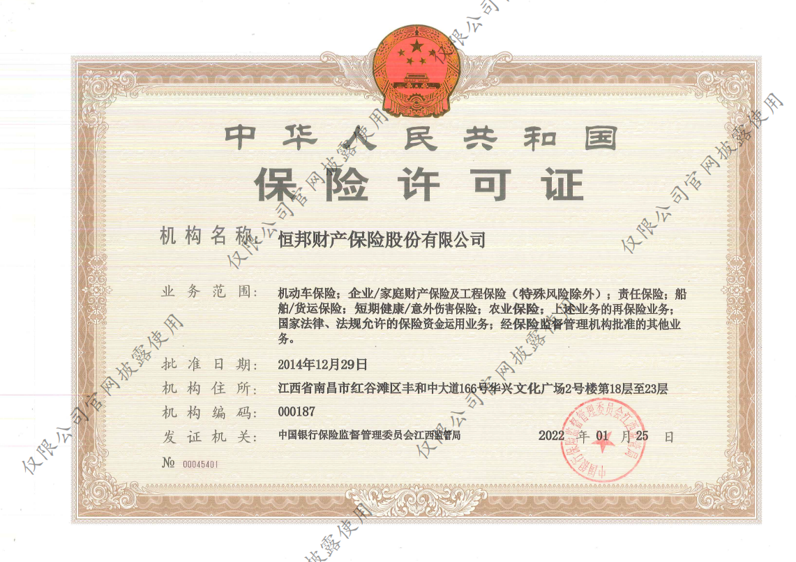 | |168飞艇官网机动车单程提车保险示范条款(2020版)机动车车上人员责任保险(BX20114103) | (恒邦财险)(备-机动车辆保险)【2023】(主)020号 | |